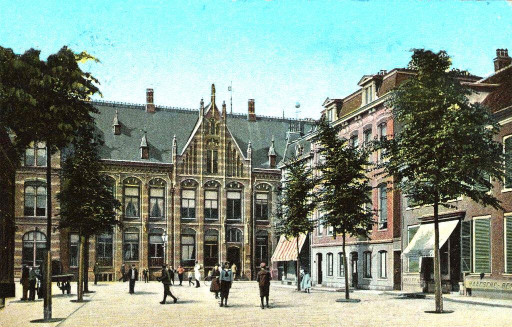 De zuidzijde van de Nieuwe Groenmarkt, met zicht op de Zijlstraat, ca. 1909